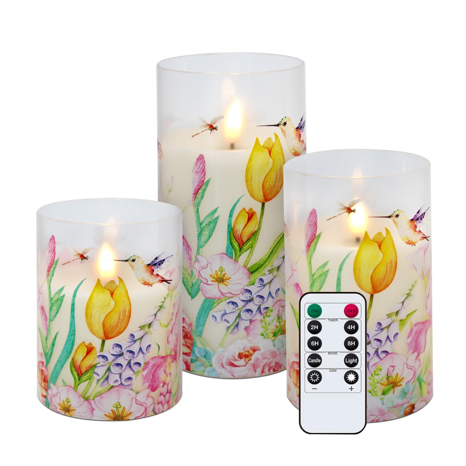 Add instant elegance and safe ambient lighting to any space with our 3PCS LED Flameless Flickering Candles Set. These decorative candle lights feature realistic flickering LED flames and beautiful handcrafted floral decal designs, creating a romantic, natural, and sophisticated glow without any fire risk, smoke, or wax mess. Powered by AA batteries and controlled by a c